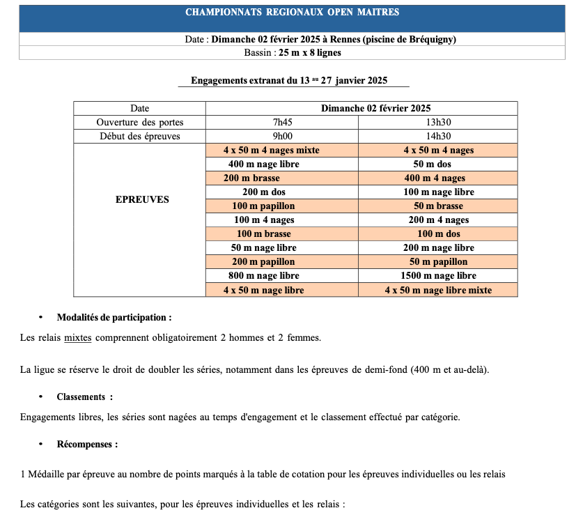 Le Championnat Régional des Maitres approche à grands pas. Il aura lieu dans un haut lieu de la natation bretonns: la piscine de Bréquigny.