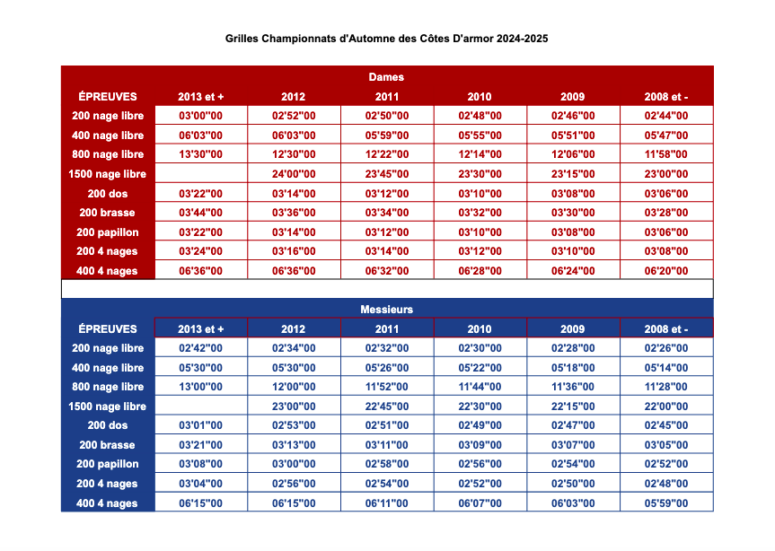 Le championnat départemental d'Automne concerne tous les nageurs compétitifs de: