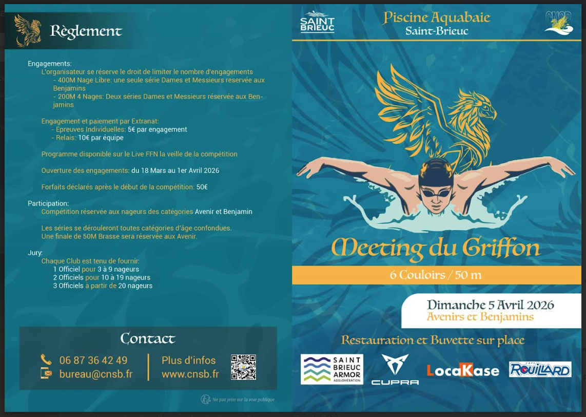 Le 5 avril aura lieu le Meeting des Griffons pour les AVENIRS compétitifs du DNS ainsi que les BENJAMINS.